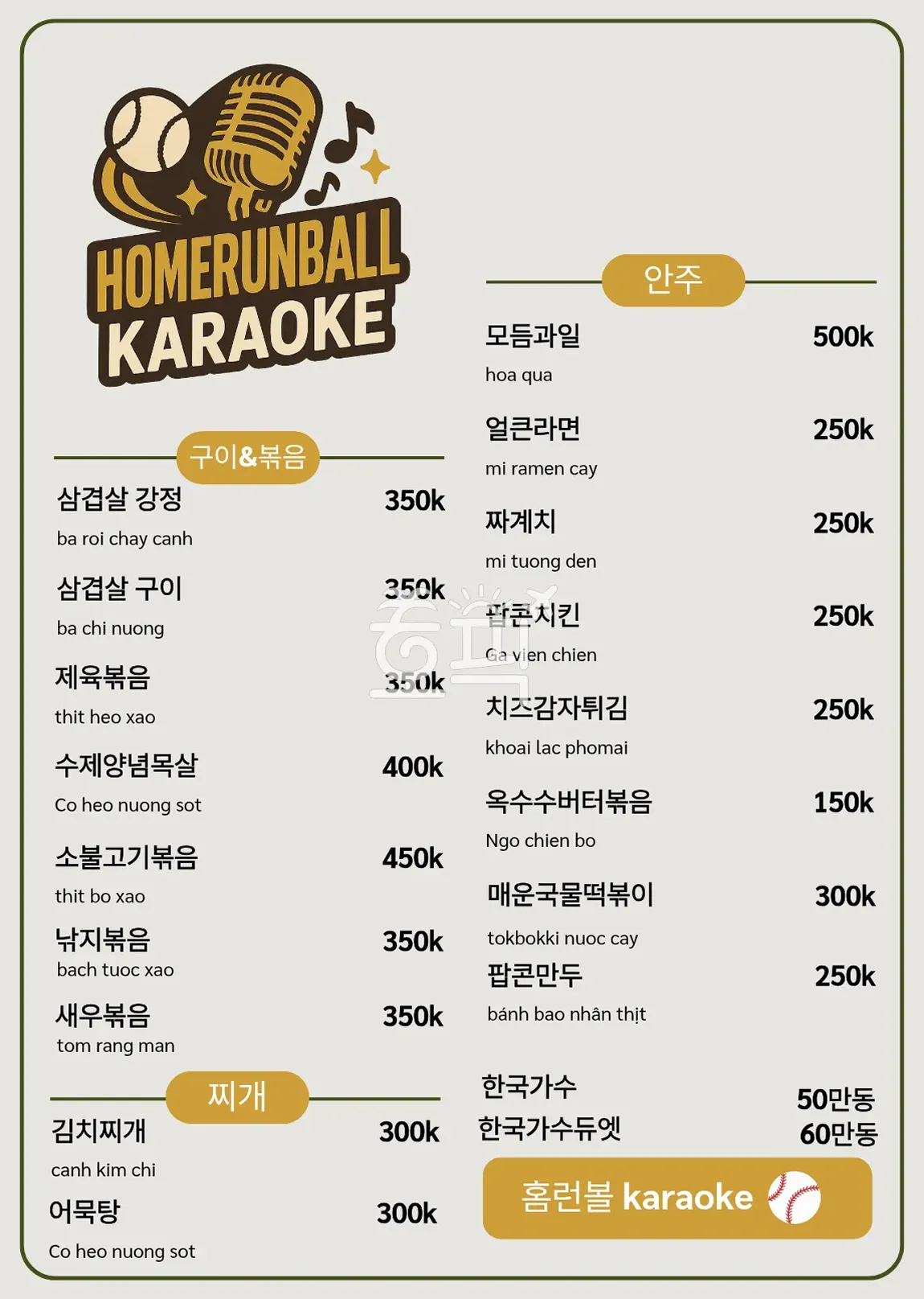 호치민 홈런볼 가라오케 | 3군 한국식 안주 KTV